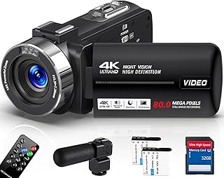 Filmadora 4K 80MP,Câmera de vídeo, Zoom Digital 18x, Visão Noturna, Tela Giratória 3 Polegadas, Controle Remoto 2.4G, Microfone Externo,Profissional para Vlog, Cartão 32GB, 2 Baterias